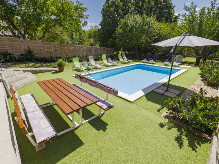 4 rom leilighet 90 m2, i øvre etasje. Romlig, komfortabelt og moderne møbler: 4 rom, hvert rom med 2 senger. Åpent kjøkken). 2 dusjer/WC. Oppvarming (ekstra). øverste etasje: (utendørs trapp) stor stue med, satelit-TV, flatskjerms TV og DVD. 1 rom med, 1 dobbeltseng (200 cm, lengde 200 cm). Utgang til balkongen. 1 rom med, 1 dobbeltseng (180 cm, lengde 200 cm). Utgang til terrassen. 1 rom med, 1 dobbeltseng (180 cm, lengde 200 cm). Åpent kjøkken (4 kokeplater, stekeovn, oppvaskmaskin, mikrobølgeovn). Bad/WC, sep. WC. Terrasse 20 m2, terrasse 15 m2. Terrassemøbler, balkongmøbler. Parkeringsplass (inngjerdet, 3 Biler).
